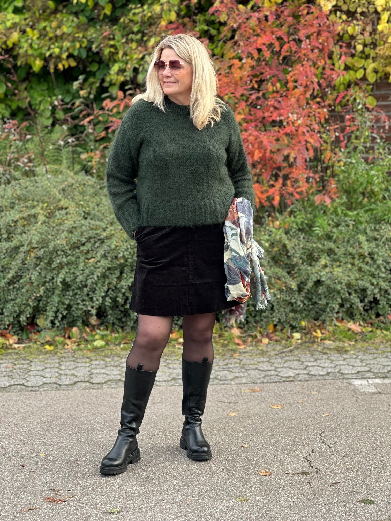 Skjørt i fløyelslook med lommer og strikk i livet
